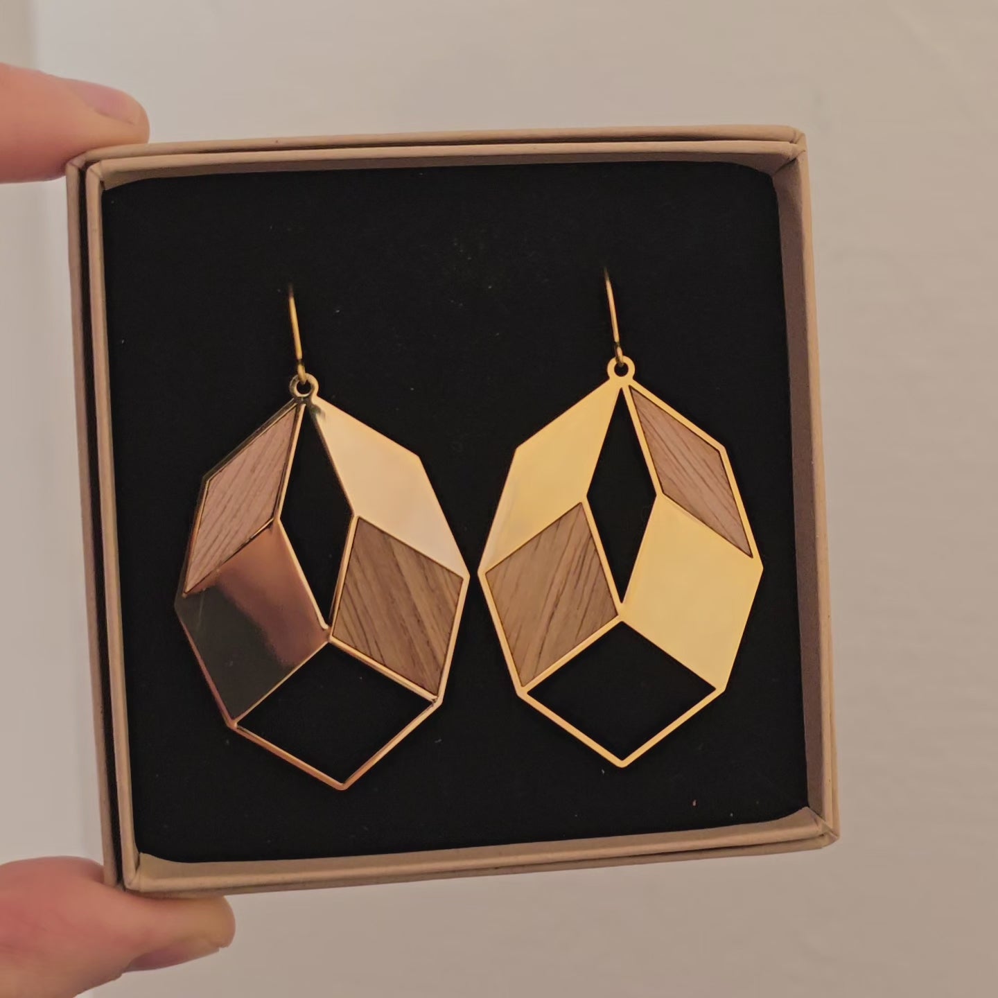 Die glänzend vergoldeten „Autumn Leaves Big“ Ohrringe vereinen luxuriösen Glanz mit der natürlichen Schönheit von Holz. Das edle Farbspiel zwischen Gold und den Holzintarsien verleiht diesen Ohrringen eine besondere Raffinesse. Trotz ihrer Größe sind sie angenehm leicht zu tragen.